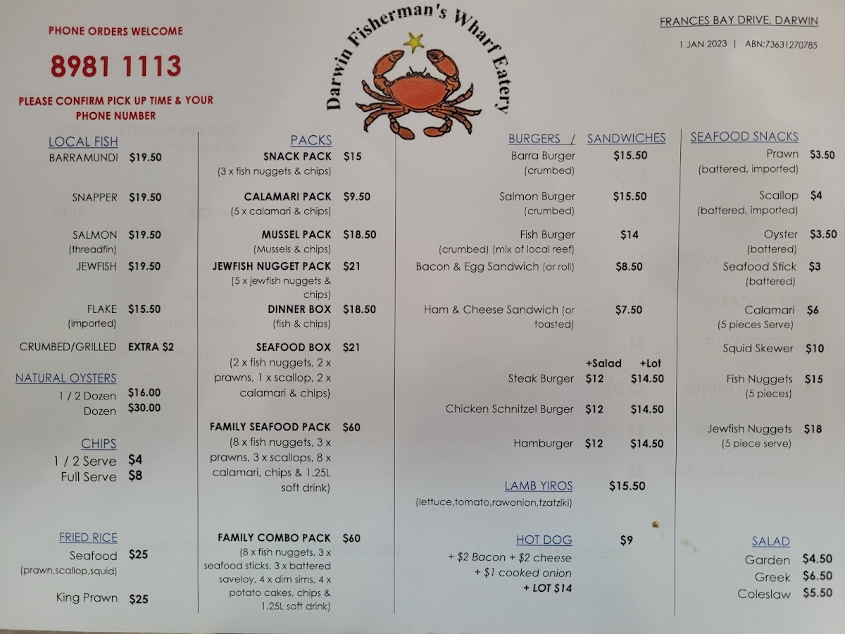 Whether you're craving a late lunch or just passing by, the delicious offerings at Darwin Fisherman's Wharf Eatery are sure to impress.